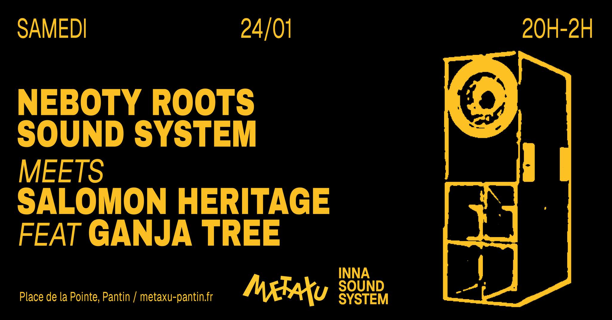 Neboty Roots Sound System invite Salomon Heritage feat. Ganja Tree pour une rencontre explosive, le samedi 24 janvier 2026, à bord de la péniche Metaxu 🔊